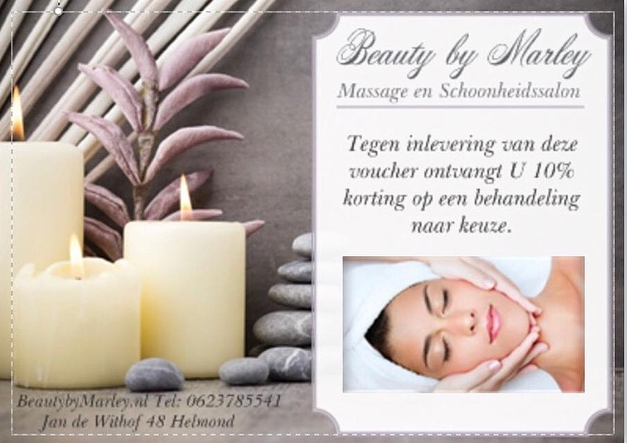 Bij Beauty by Marley ontvangt u altijd na de eerste behandeling een 10% kortingsvoucher mee naar huis.